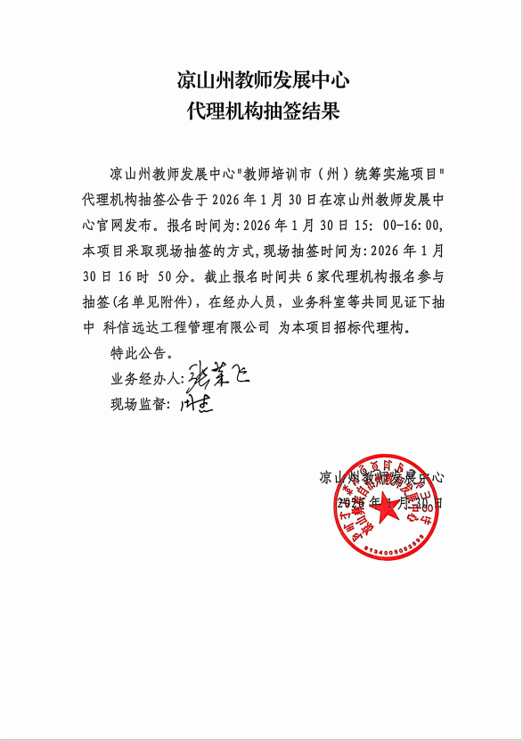 凉山州教师发展中心教师培训市(州)统筹实施项目代理机构抽签结果